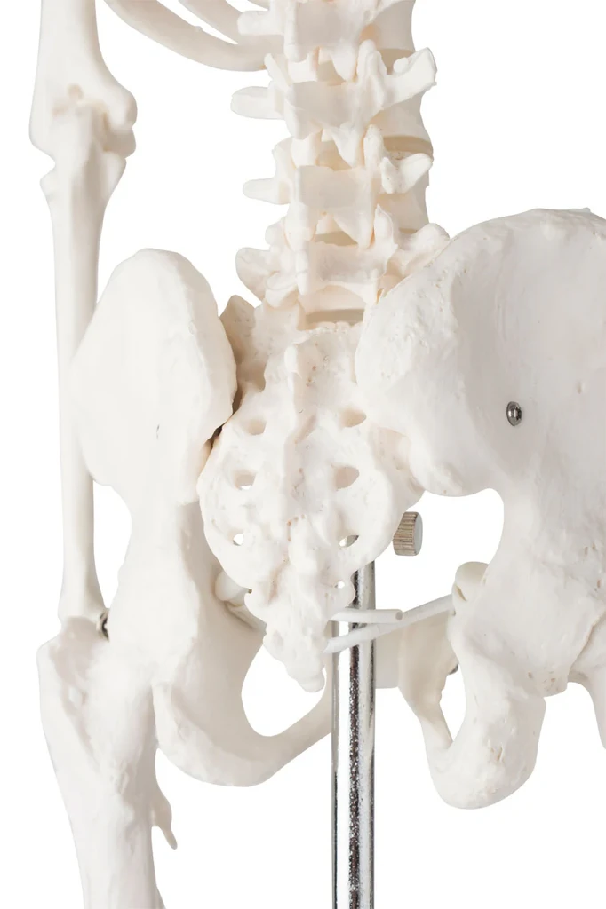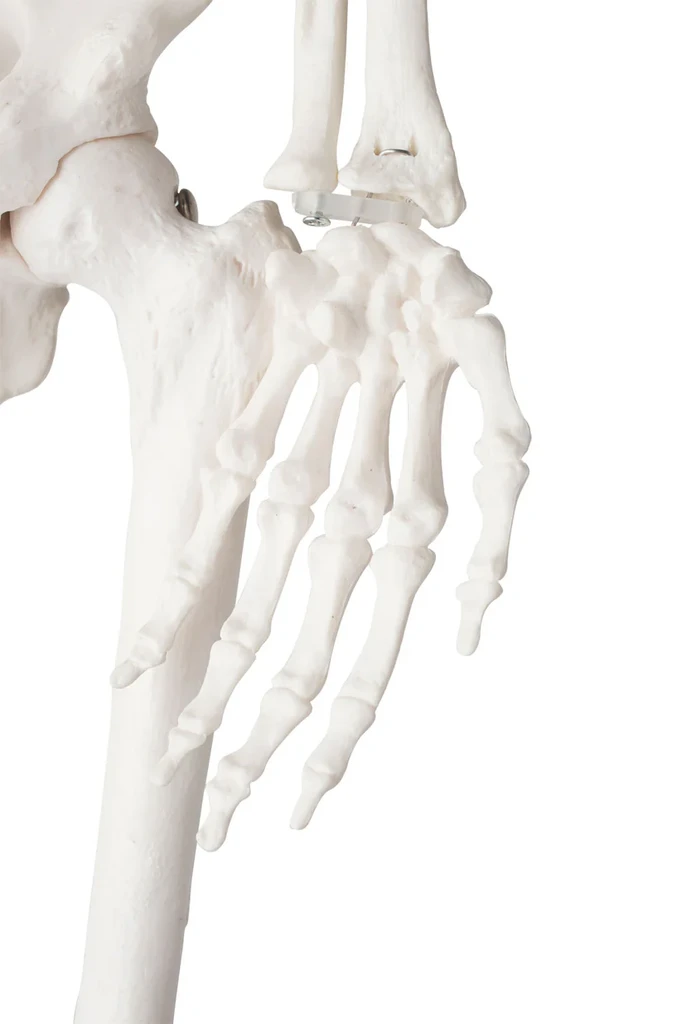 Le modèle est particulièrement flexible au niveau des articulations de l'épaule et de la hanche, ce qui est inhabituel pour les mini-squelettes et autres squelettes de cette gamme de prix. Pour les autres articulations, l'amplitude de mouvement est limitée car elles sont maintenues ensemble par du métal et/ou du plastique. Par exemple, la rotation des articulations du genou ne peut pas être démontrée, bien que la flexion et l'extension (flexion et étirement) soient possibles.