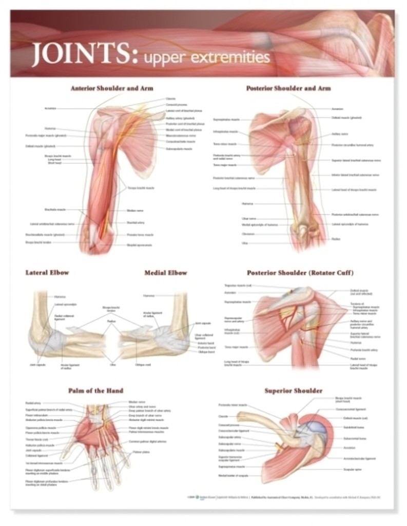 Ce poster est donc idéal pour être accroché chez le kinésithérapeute, le chiropracteur, le masseur ou le médecin, où il facilitera l'explication des différentes pathologies du membre supérieur.Contenu :